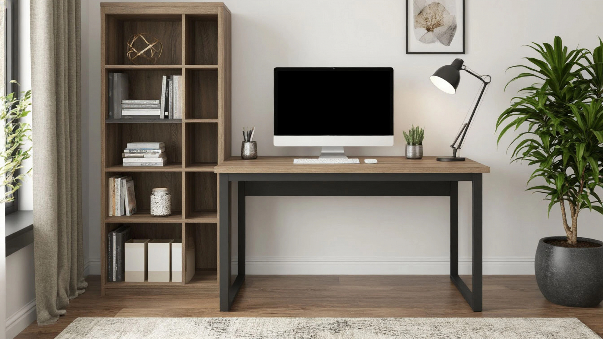 Стол выполнен в современном и лаконичном стиле, что позволяет ему легко вписаться в любой интерьер — от минималистичного до более классического. Сочетание теплого оттенка дуба и строгого графита создает гармонию и визуальный баланс. Древесная текстура придаёт мебели уютный и натуральный вид, а графитовые акценты добавляют современности и строгости. Это идеальное решение как для домашнего офиса, так и для корпоративных помещений, где важно создать атмосферу профессионализма.