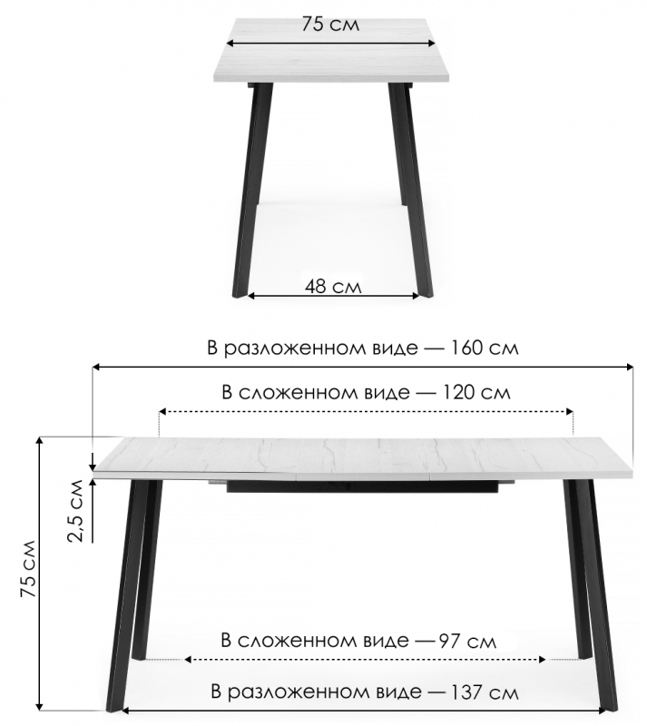 Стол деревянный Колон Лофт 120(160)х75 черный матовый / дуб крафт табачный (75x75).