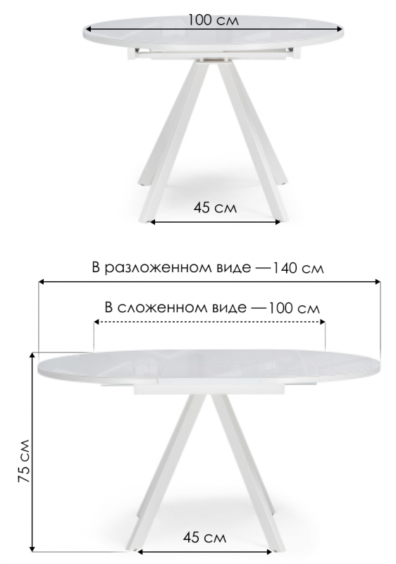 Длина стола в разложенном виде: 140 см.
